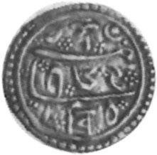 Obverse: Trident at center. Obverse Inscription: Shri Rupamati (Queen of Pratap Malla)